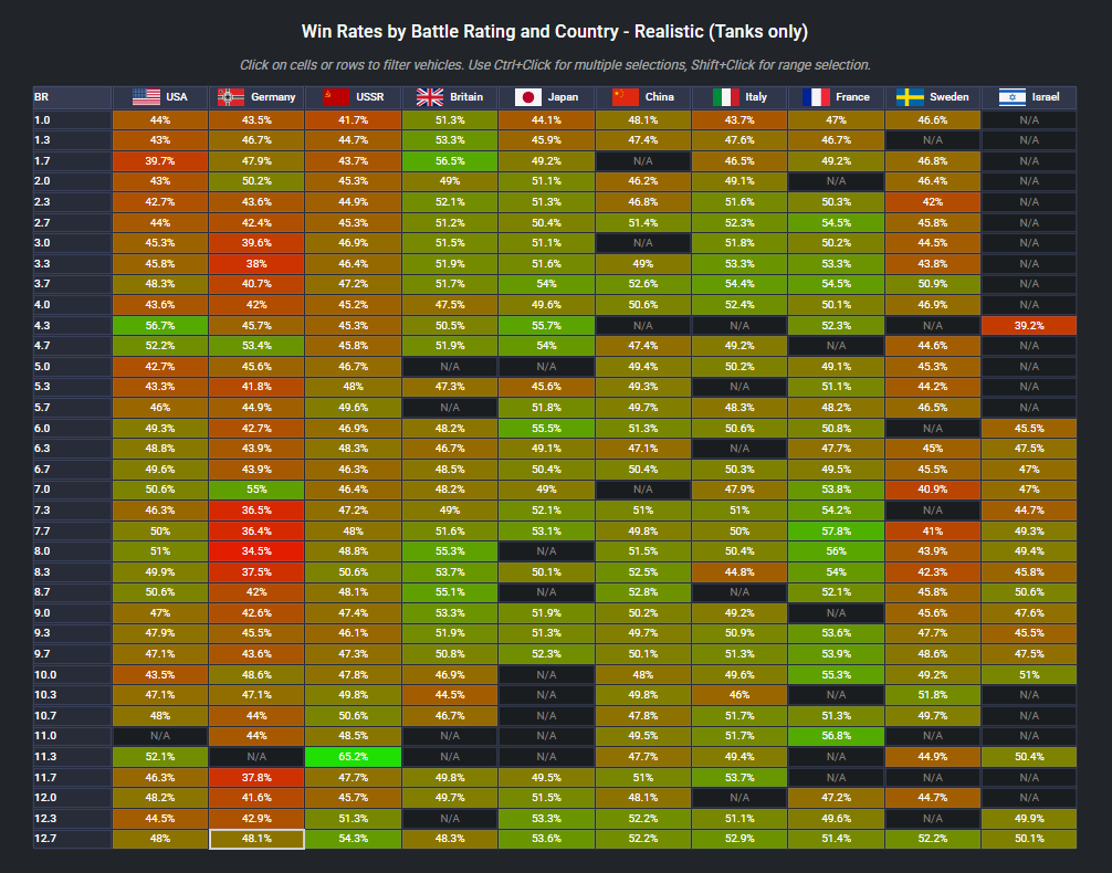 According to most WT Heat Maps Germany dropped from 55%~ win rates at higher BRs all the way to 42-40%. Not sure where your stats are coming from.