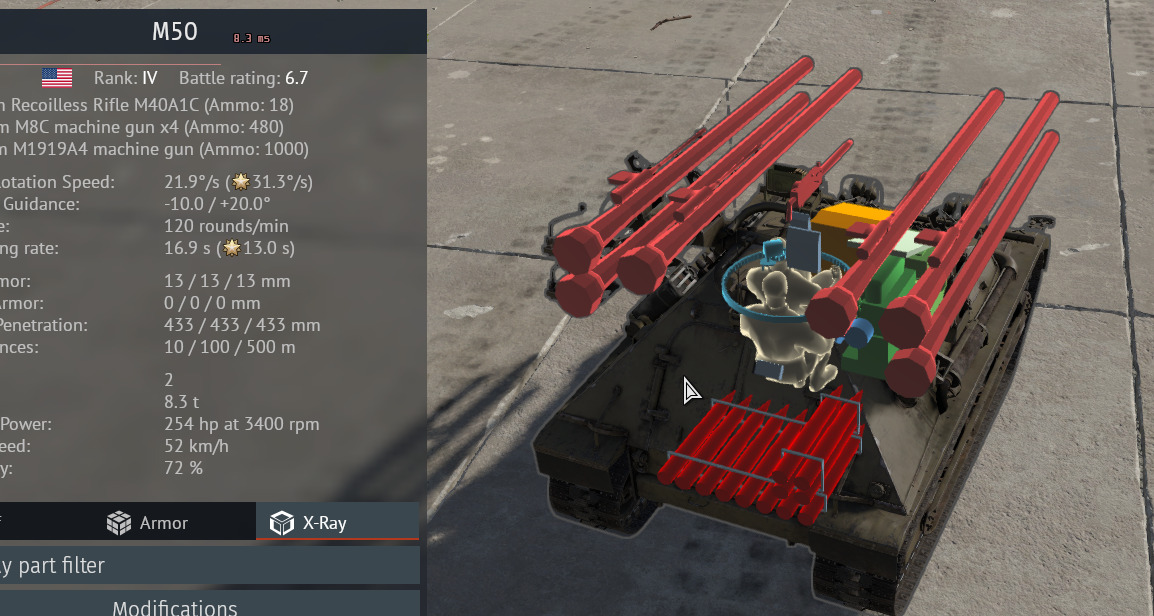 But guess what? The loader on the Ontos can magically reload 6 recoilless rifles in 13s, that’s just 2.16s per gun!