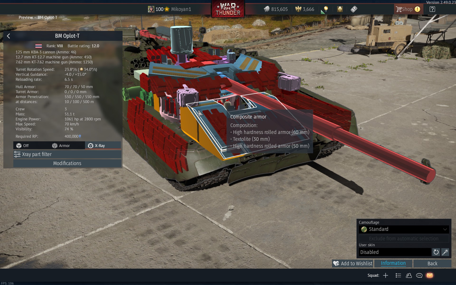 I don’t have concrete proof however there’s threads discussing that which does have some basis or sense, it was stated in the forums that the T-84BM Oplot has relatively thinner internal armor composite when compared to T-80UD: