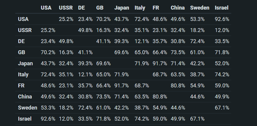 Just complain to devs about all the green winrate colors in the russian top tier grb brackets instead of attacking me lol. I’m not the one who conveniently put all these things together to give Russia the absolute dominance at top tier