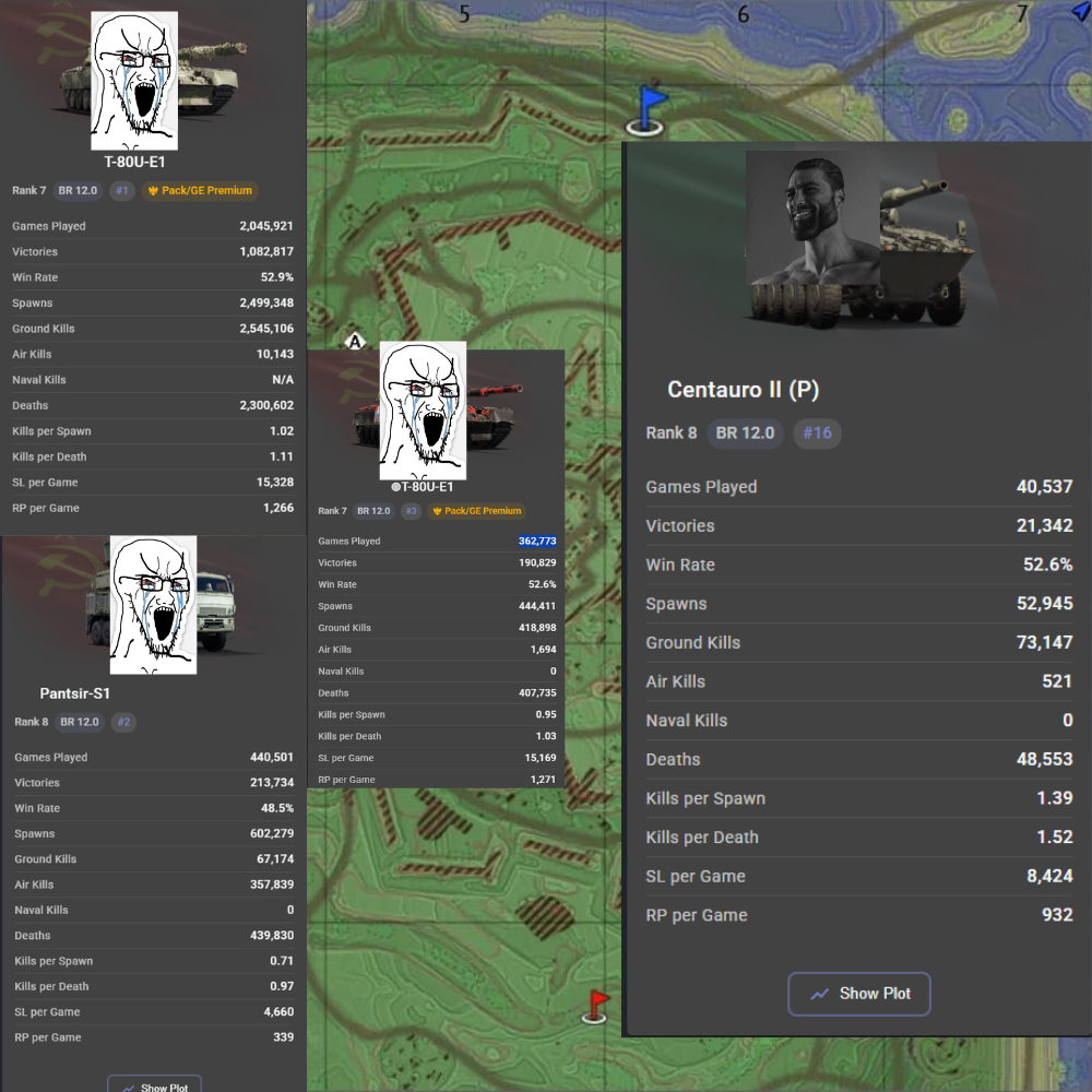 Mb fucked up the math on that initially. russia is only 34.7% of all games at 12.7 and only 40.4% of all games in 10.3+. So Gaijin better fire up some buffs otherwise well never hit the 50%