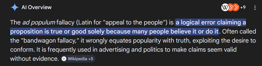You dont hear what? An incorrect usage of argumentum ad populum?