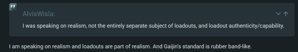 I am speaking on realism and loadouts are part of realism. And Gaijin’s standard is rubber band-like.