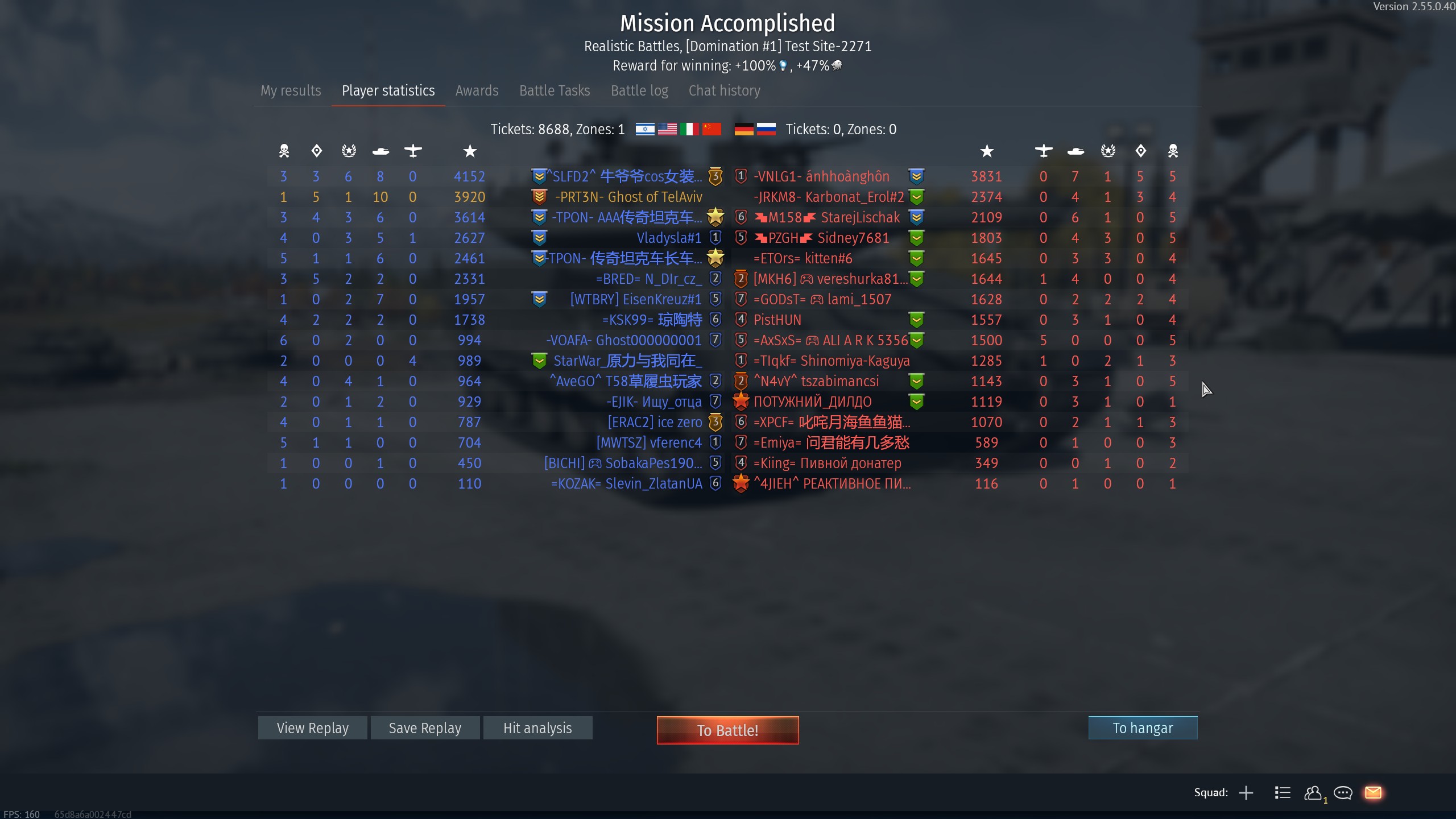 9.3-9.7 and 8.3 are typically the kind of BRs I call balanced (8.3 more debatable due to Turm + T58 + 906, but heh), because Russia actually looses as much as they win there. There is also no nation in particular overwinning. No complaint at all at these BRs, it’s actually enjoyable to play and nukes are even possible while playing France.