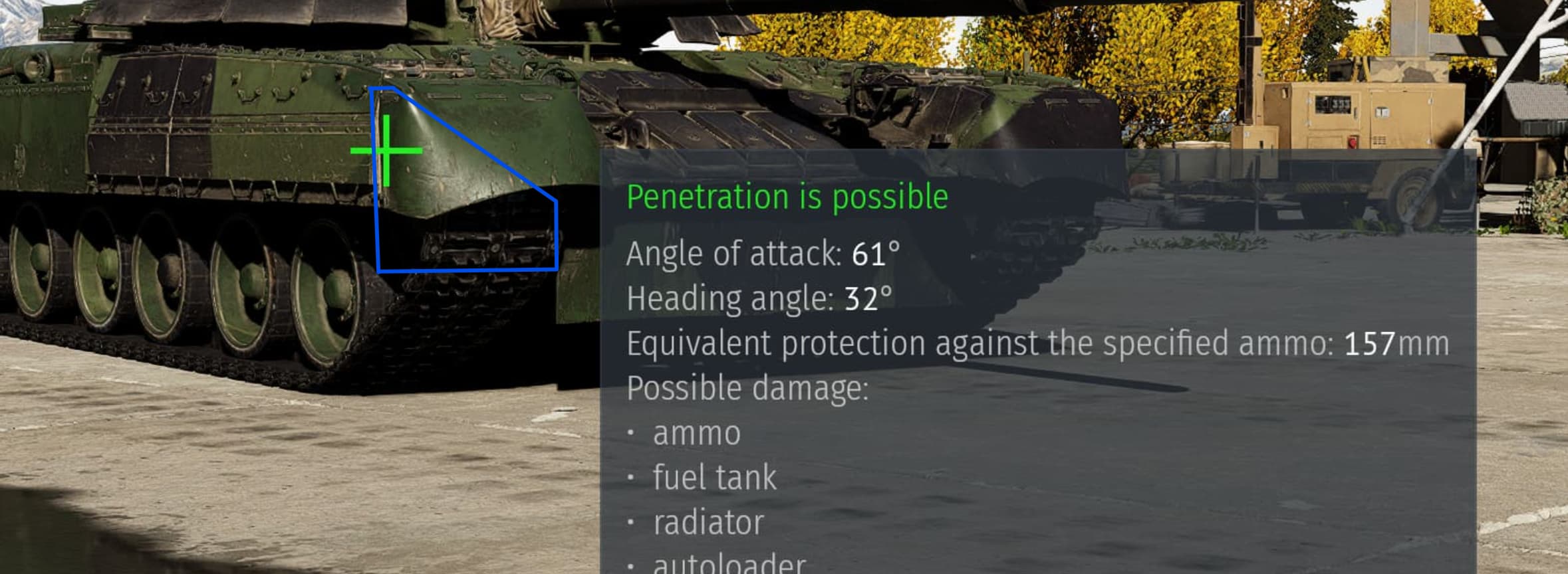 you cant really go for other shots from that angle though, because the ERA and fuel tank might eat your dart, and even if they dont you probably wont kill 2 crew