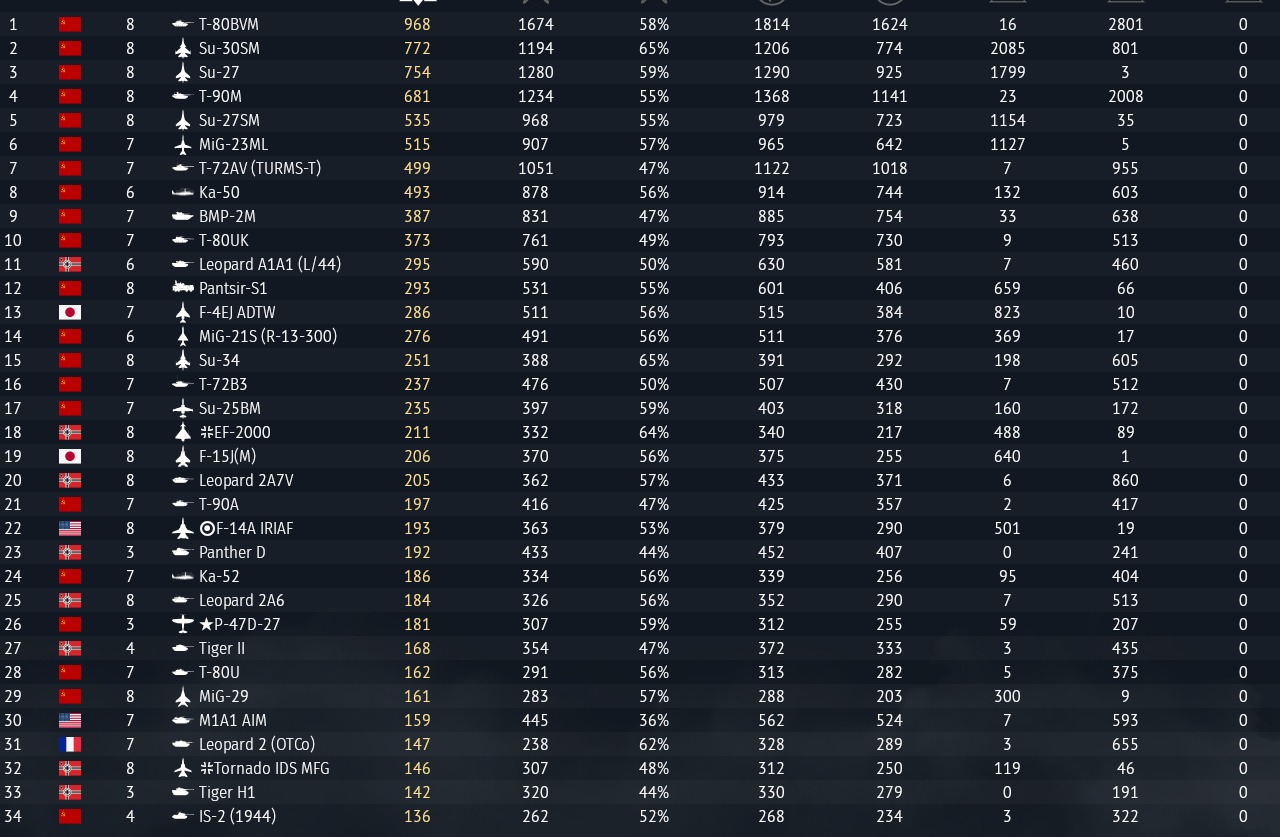 Just as I use German, Japanese, and French and I never had any problems with Soviet vehicles., I was even going to finish the American line, buying the M1 Clickbait along with the Mirage F1, but since a gaijin brought a premium SU-30, I had to buy the SU-30.