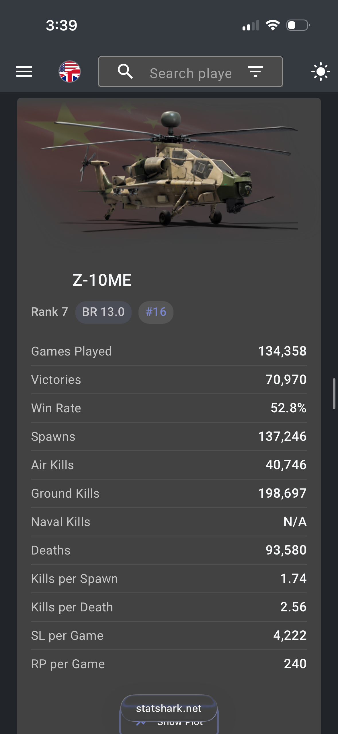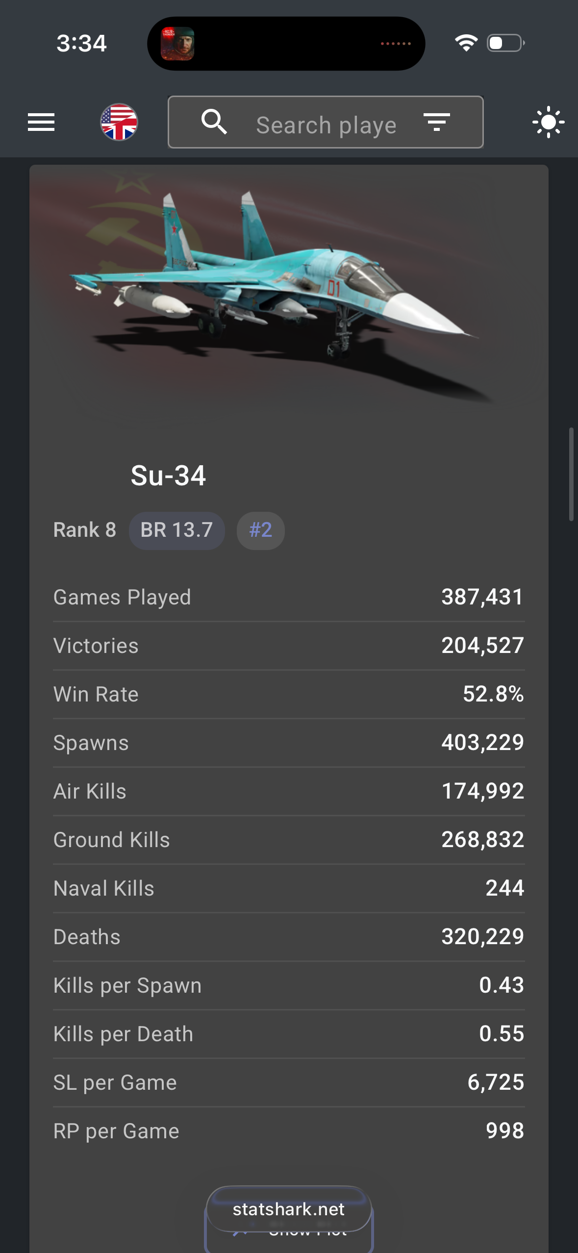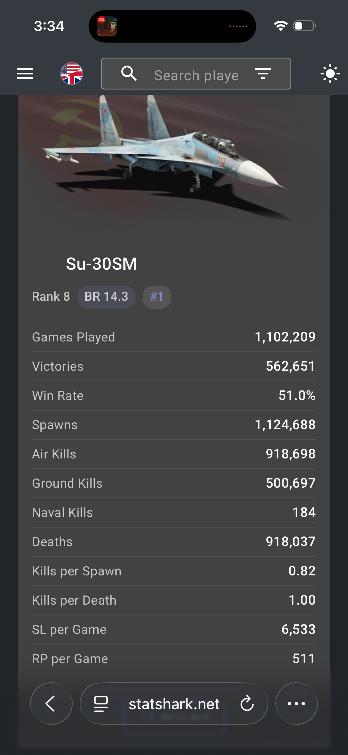 One of the worst things about stats in war thunder is that there isn’t a way to split AI/player kills, and kills in different modes. For example, the Su-34 isn’t the best in air RB, and its stats will reflect that.