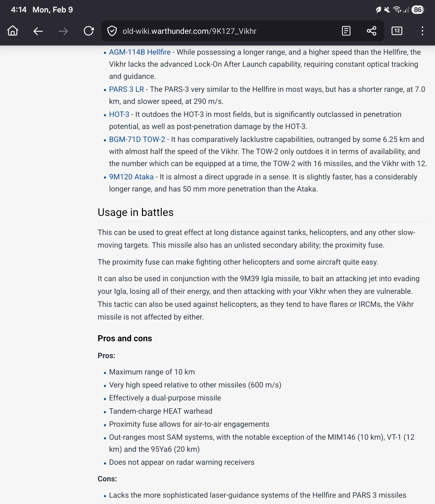 i mean yes, it’s proxy fuze, but it’s an ATGM, not an A2A missile. the fact it can kill planes doesn’t mean it’s good against them, it has poor maneuverability and max speed (i launched a Vikhr at 5km head-on and it couldn’t reach the MiG-15bis but the file was too big so i couldn’t show that part) so it’s mostly useless against a supersonic jet, and with the new SPAAs camping everywhere, not pretty sure if u can actually get a helicopter kill with the Vikhr.