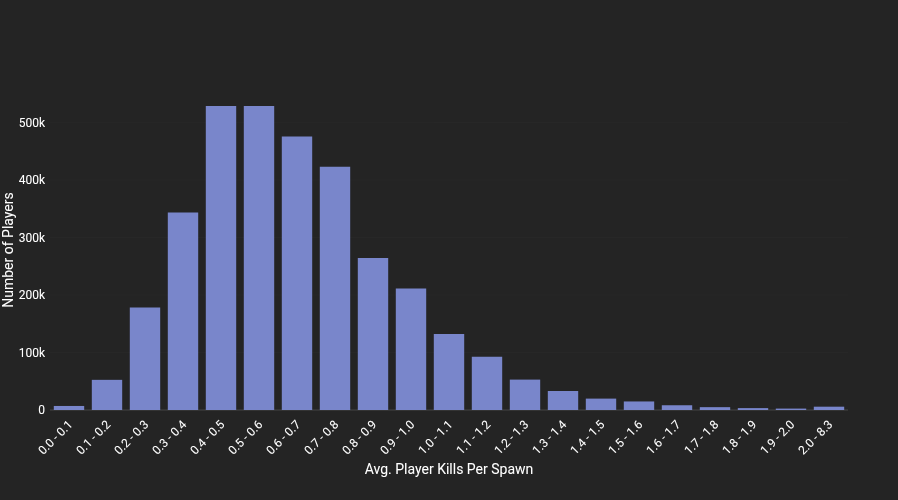 It’s not 90% but is definitely a balanced and constant declension of the numbers, using the average kill-death ratio is, in my opinion the best to check user individual skill, is subjective, unless you have better sources for that. And is a unfortunate that we can’t filter nations in this case, at least I’m not aware of.
