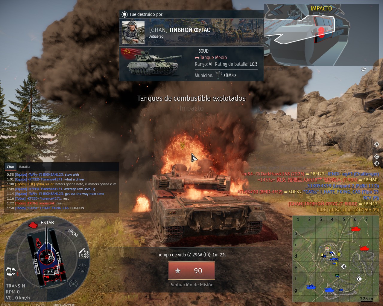 Every russian MBT if it doesnt have a ace crew have a 80% chance of dying to fuel explosion, 99% chance of being destroyed if the ammo is hit.