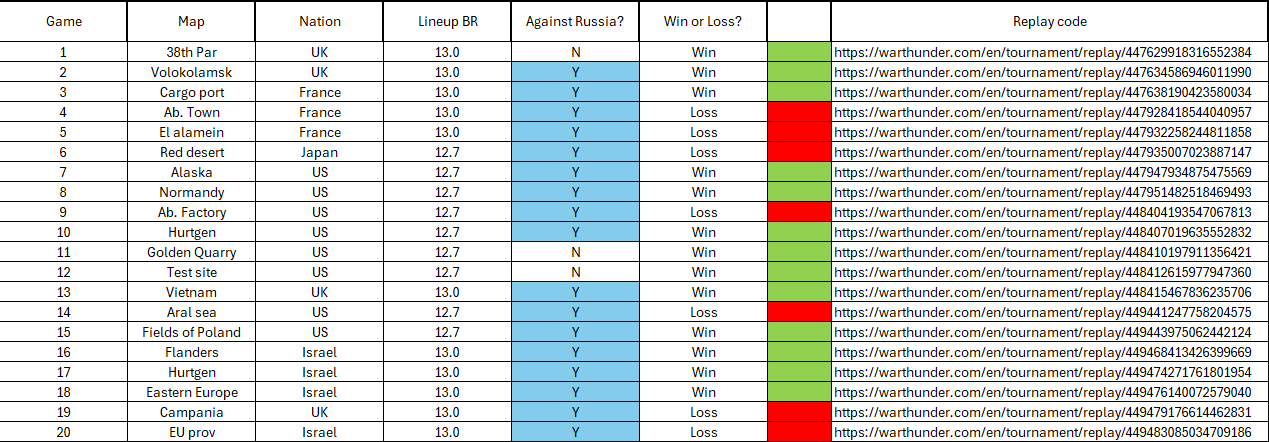 So for the Games against Russia that would be a 58% winrate for NATO, but if we count all game that would make a 50% winrate for NATO. A far cry from the 70-80% Russian GRB winrates you keep claiming.
