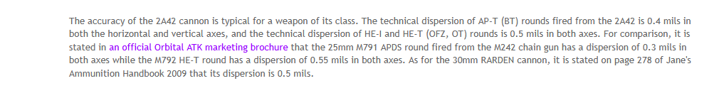 Btw, the 2A42 currently has 1.42mil of max dispersion ingame, which corresponds to ± 0.47mil typical.
