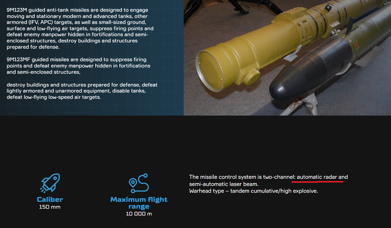 Doesn’t matter, Russian helis already have MMW ARH atgms, they just do not have that seeker channel enabled yet: