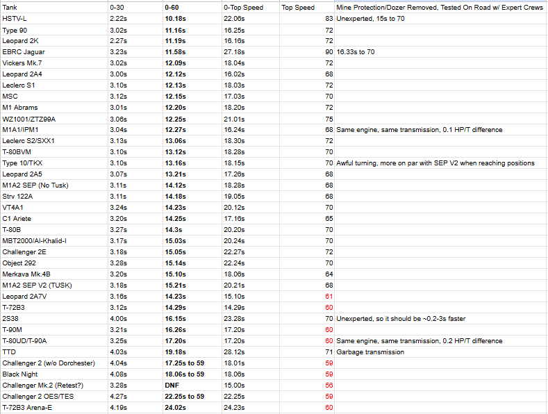 See how on the speed chart you linked, every single British tank is ranked at the bottom (Bar the 2e)? See how, there are Russian tanks which outperform nato tanks, for example the T80BVM is faster than the Leopard 2a4, 2a5, m1a2 sep, strv 122aetc etc?
