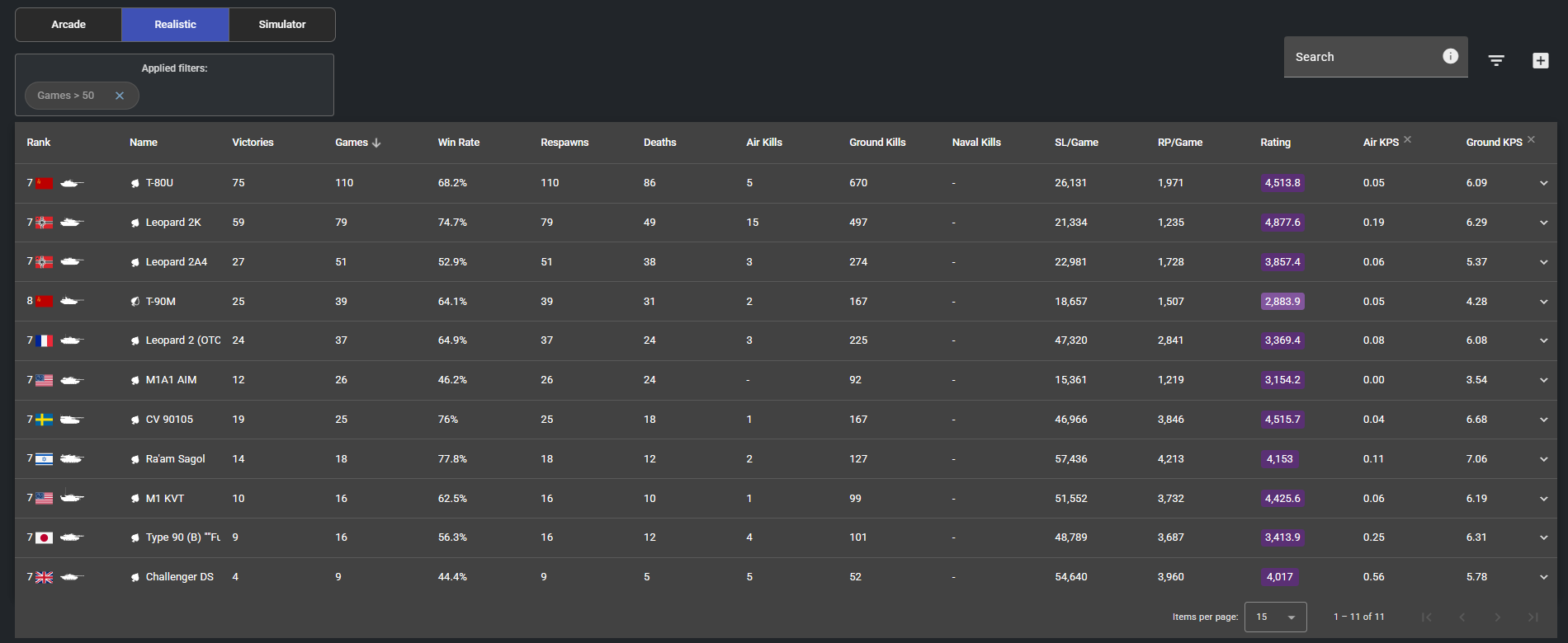 I didn’t say it’s a bad tank, it’s actually my best performing one. I say that there are not so many good Abrams players around and your data proves it. The chinese Abrams is the only one with positive WR atm, does it say that statistically it is better than the others? It just says that good players utilize it better than the others and this applies to every tank in the game.