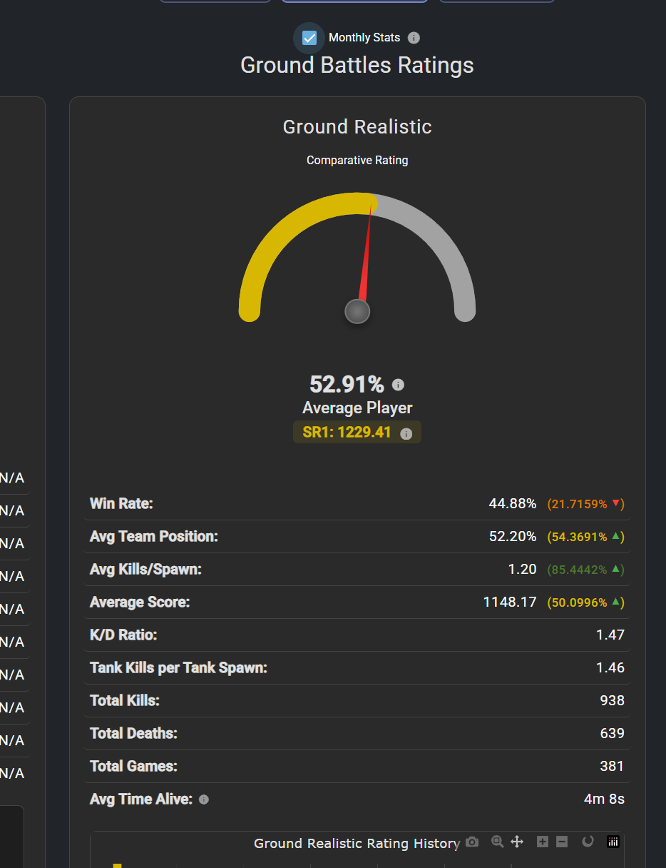 being middle of the pack when 1-2DLing at a premium BR means you are the average player, you’re not above average in anything dude, your monthly stats KDR and KPS being so close are indicative of you dying essentially every spawn which is supported by your monthly stats of 938 kills, 639 deaths (1.47kdr) with your tank on tank kps being 1.46 (642 spawns) this means you have only had THREE spawns the entire month where you HAVENT died, lol