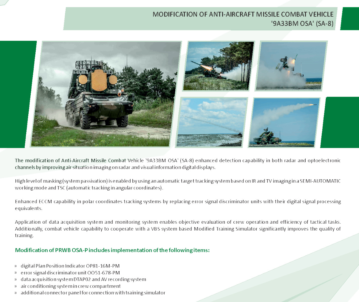 To maintain the relevance of the SA-8 at Spadeadam, the UK Ministry of Defence’s Air Defence & Air Traffic Systems Delivery Team awarded a £4 million contract to Babcock to overhaul and modernise two SA-8 systems used in electronic warfare training. The work includes complete strip-down, refurbishment, digital upgrades, new LCD displays, thermal and visual imagers, and improvements to reliability and maintainability.