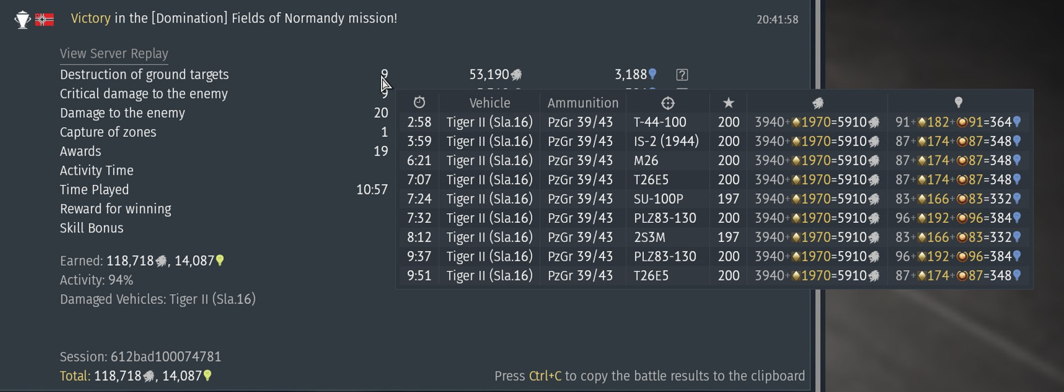 I’ve also included a nuke at 8.0 where I killed a Sheridan, an M103, two Somuas and a 7.7 Centurion. The American Desert part of the compilation video has another AMX-50 and an M103. The Ardennes video has an M60 and another M103… of course these vehicles will have an advantage over you, there’s a reason why they are higher in BR, but the point is that in the Tiger II you can reliably kill them. Not every heavy can say the same when playing in a full uptier (or even outside its own bracket, for the 8.0 matches!).