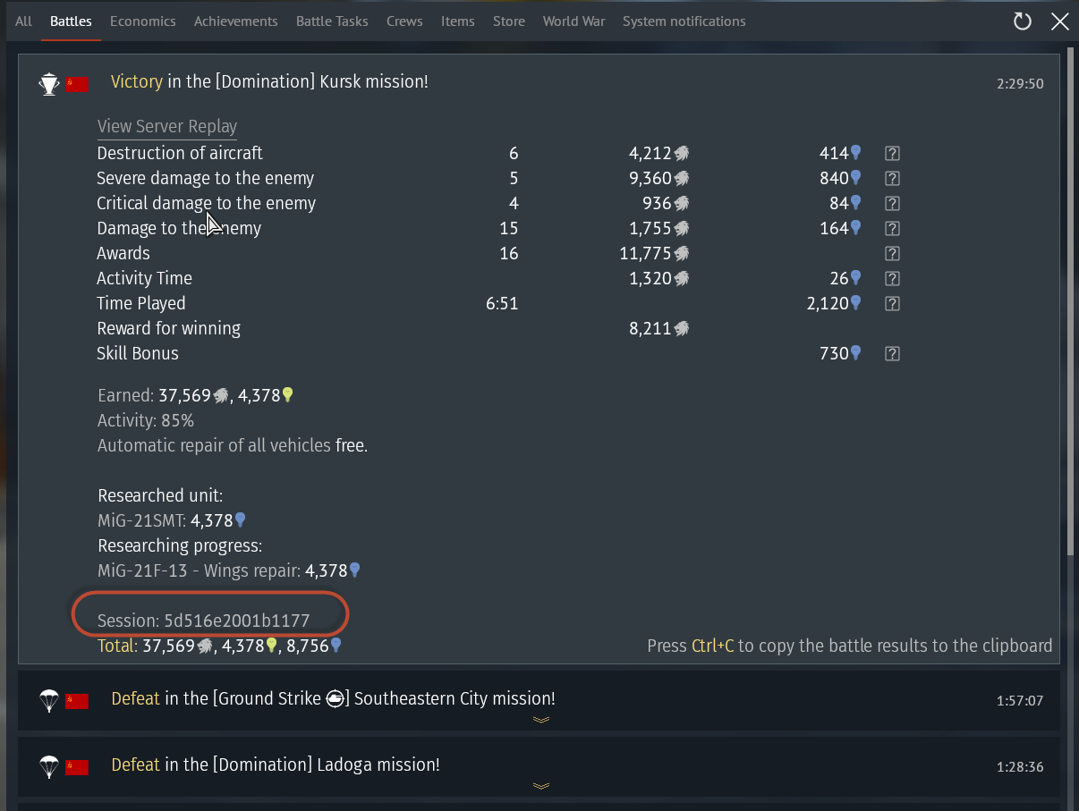 Crucially, the match IS visible in the official War Thunder Server Replay system , proving the session was active and recorded on Gaijin’s servers, but the conclusion/reward phase failed.