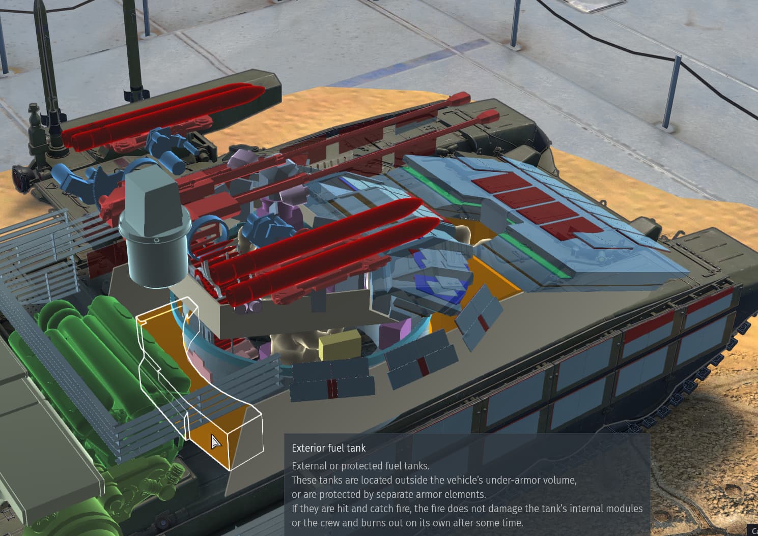 They made the fuel-tank, with no armour or other separation from the crew-compartment external aswell on BMPT72 - which is just a complete joke, because even the description of the “exterior fuel-tank” quite literally says what is required for one to be considered as such. NONE of these requirements are met.