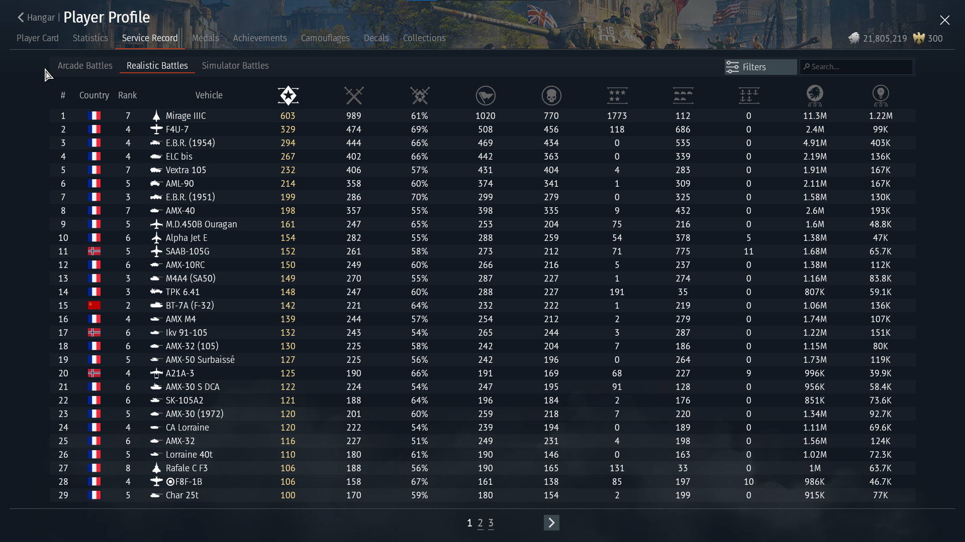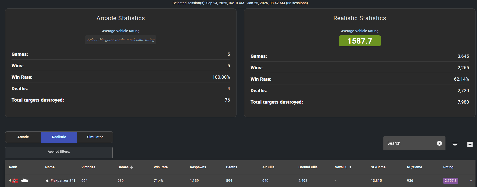 It’s kind of why I went and added the second image tbf. First image looks like I barely even played - just 56 games in the Bf 109 F4, 35 in F4U-4 less than 30 for the rest. Mostly 10 or so for most.