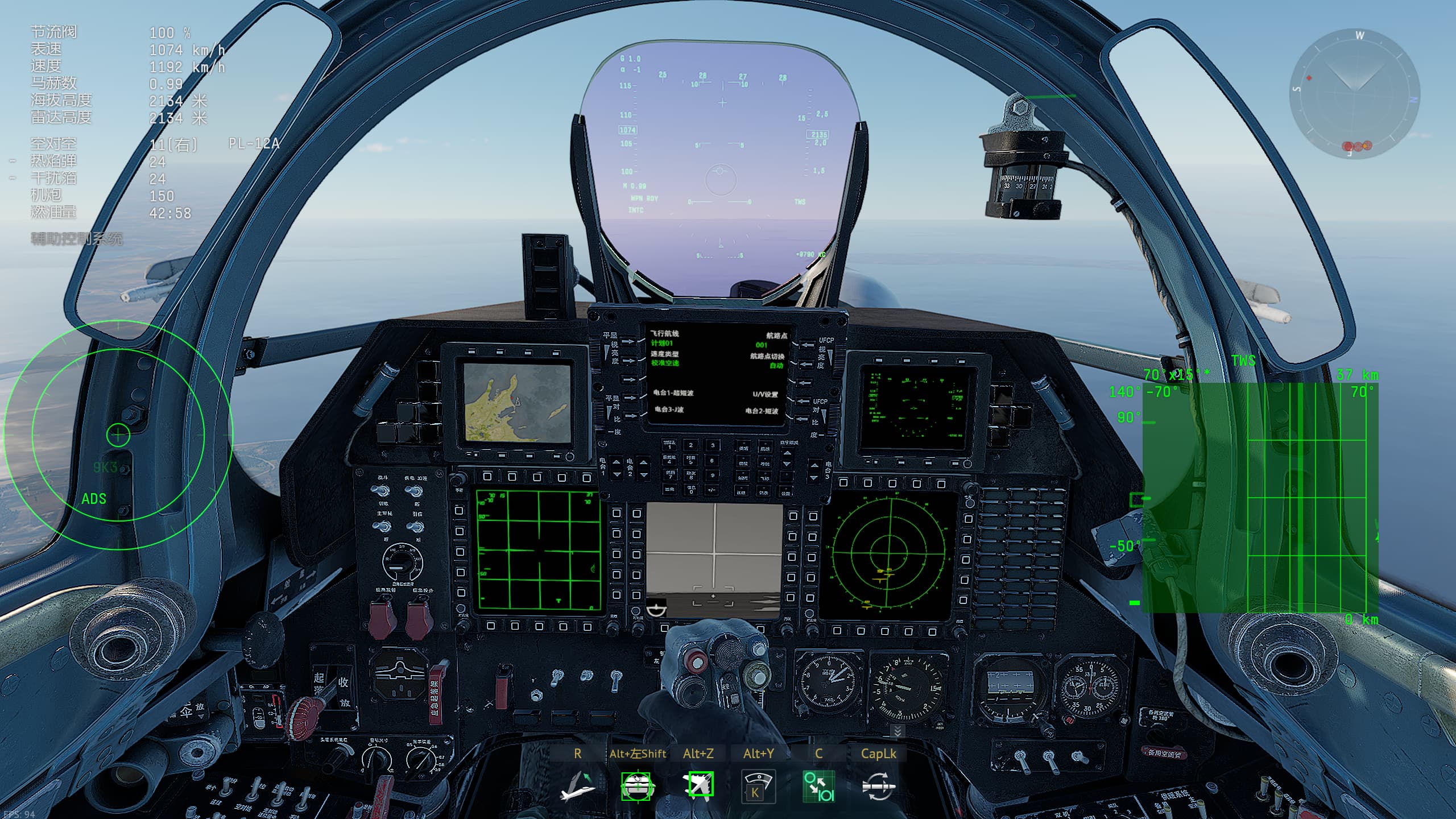 The known bits being the top right triangular MFD like in the J-16 and top left button panel like in the J-16 but different button layout.