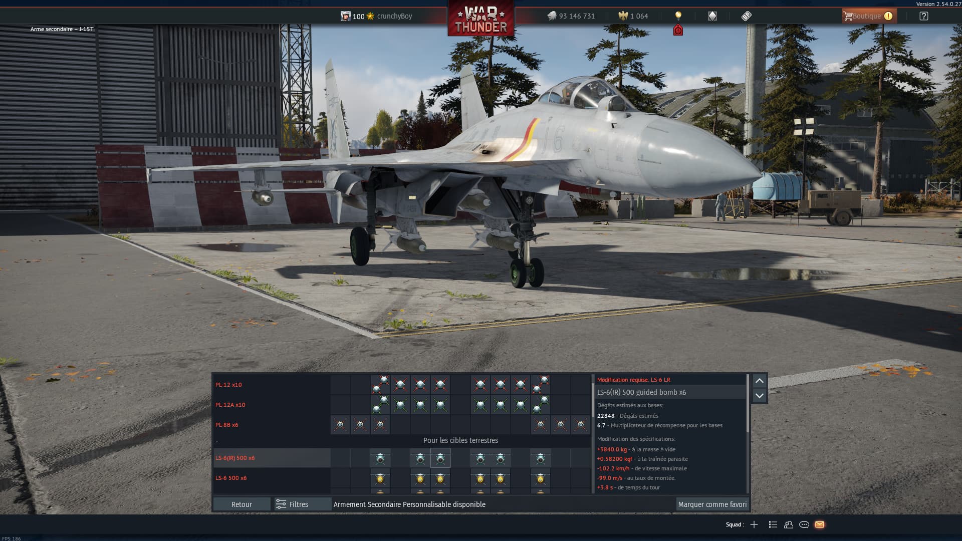 the LS-6 500 IR on pylons 3 prevents us from having dual PL12As, whereas the J15T would be able to take an LS-6 500 IR on pylons 2 like the J11B, which simply replaces the FOX 2s.