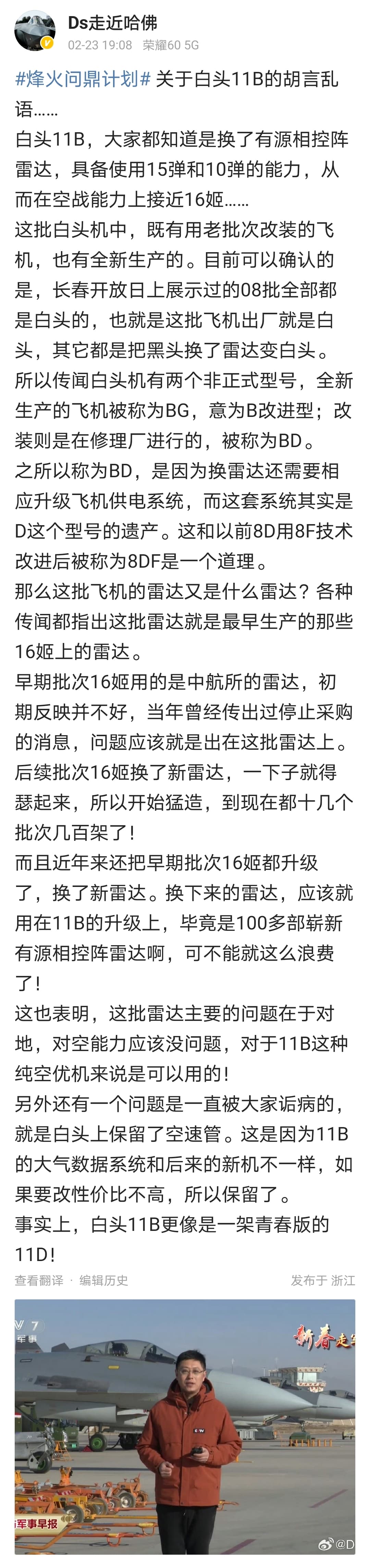 The conversion isn’t as difficult as you might think. The Batch 08 J-11BGs were all newly built, giving them ample opportunity to redesign the nose space and then directly apply the results to retrofitting the earlier J-11Bs.Additionally, the J-16 did undergo a radar replacement in the early stages of its service life, and the number of units involved matches the current quantity of J-11BGs.