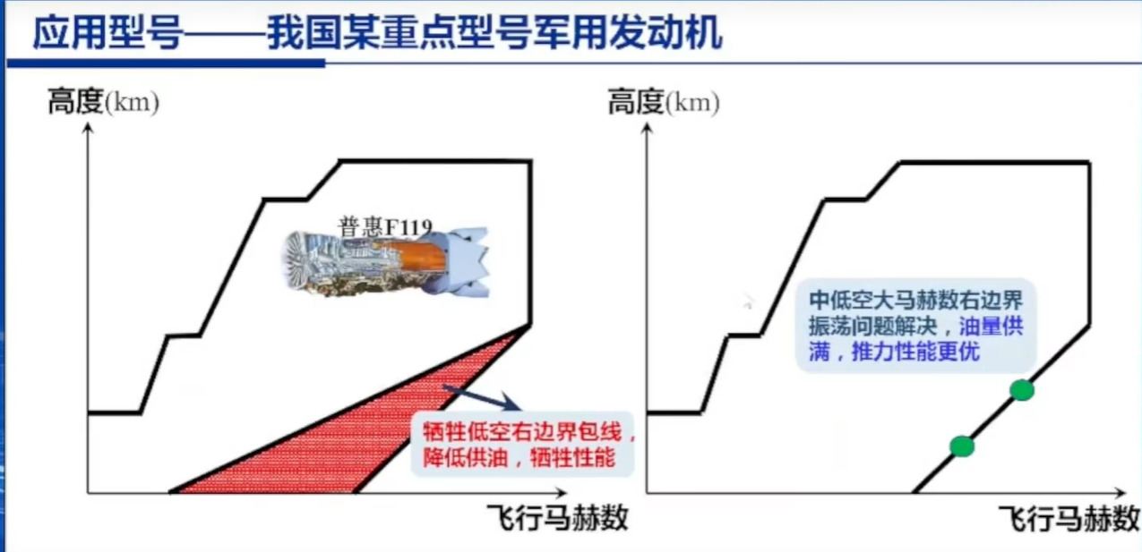 The left side has that red shaded area with the Chinese text saying it loses fuel supply/stability at low altitude + high Mach, while the right side (I assume WS15) just says “problem solved, fuel supply full, thrust performance better.” So it’s not measured data, more like a qualitative claim that the WS-15 handles that region better.