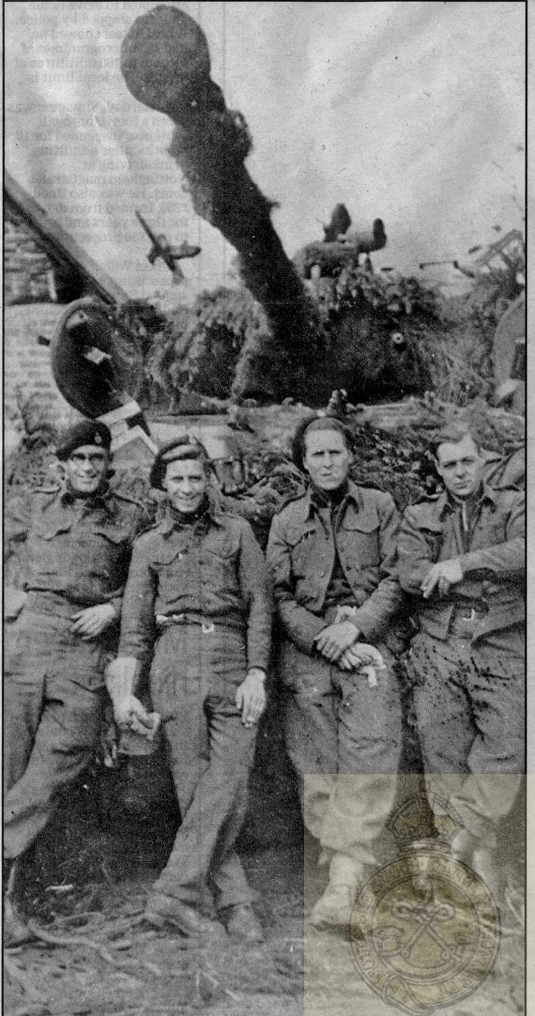 Tank crews crowd onto a Sherman Firefly to celebrate the capture of Le Beny Bocage, 1 August 1944. - IWM (B 8343)