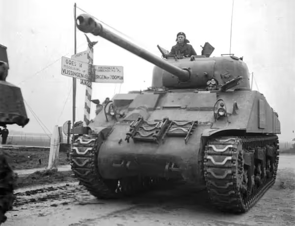 It didn’t take long for Canadian units to begin mounting things onto their Shermans for extra armour. The British Columbia Dragoons would start doing this in Italy during March of 1944, and the South Alberta Regiment would mount Tiger tracks they got their hands on in August of 1944. Whether or not these attempts were effective is up for debate. The Shermans would face other threats like mines and handheld anti-tank weapons. Despite this, as long as the Sherman didn’t catch on fire or lose its gun, its crew was ordered to fight until it had no ammo left. By the end of the war, Canadian forces would lose over 351 Sherman tanks, even so the Shermans pushed on in every battlefield they saw. The Sherman would make up a large number of the now-skilled and powerful Armoured Corps, which had started as a group of enthusiasts with outdated equipment, and by the end of the war, King George VI would grant the Canadian Armoured Corps, the name Royal Canadian Armoured Corps.