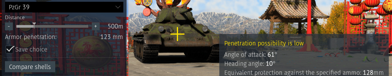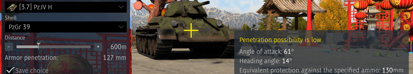 But it isn’t only 0.07°. It’s also shell-drop, and the angle you’ve put the camera at literally causes the shell to go upwards from the camera perspective. I perfectly understand the chart, it’s just that the chart is crap and doesn’t take into account shell drop. A flat-on near 0° angle is impossible with munitions as slow as the Pz. IV’s, without it sitting lower than the T-34 to start with.