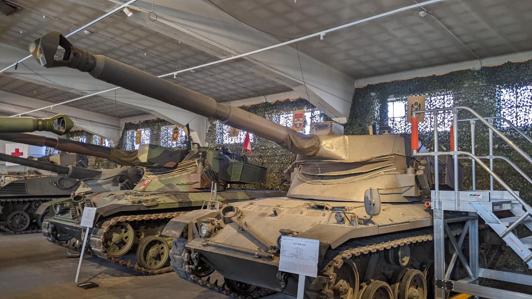 The Super Kürassier was designed in the early-to-mid 1980s — two prototypes were constructed in 1985. The upgrade program centred on upgrading the fire control system. It saw a new upper turret, very similar to that of the earlier Kürassier II upgrade, fitted with Leopard 2 FCS components, alongside an electronic turret drive and stabilisation for the main gun, although this was only fitted to the 2nd prototype. The vehicle also featured a new single-stage muzzlebrake that permitted the firing of APFSDS rounds (along with the improved FCS). That vehicle then underwent trials with the Bundesheer. However, despite promising results, the program was shelved due to the high costs. The SK-105A2 was developed afterwards (and as such, the Super Kürassier has sometimes been referred to as a prototype of the SK-105A2, although this isn’t really true). The second Super Kürassier prototype is now on display at the Heeresgeschichtliches Museum in Austria.