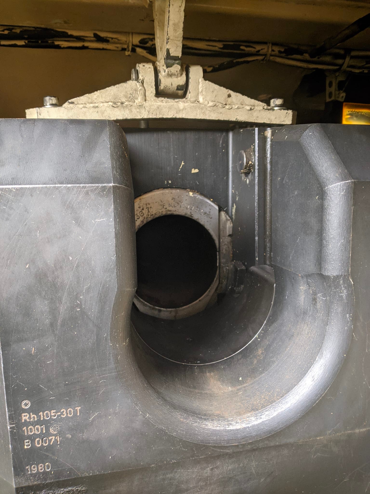 Construction then began of a prototype of such a turret, using an FMK.4 Modelo 1L delivered by Argentina (unlike what is commonly claimed, that it used the M68). The new turret was clearly inspired by the earlier turret design of the Kürassier II and Super Kürassier prototypes, but was even bigger, to accommodate the new cannon and larger ammunition. The original Austrian SK-105 turret is known as the JT1, and the museum sign for this upgrade calls it the Kürassier JT11, likely referring to the name of the new turret. It featured the same Leopard 2-derived FCS as the Super Kürassier, but also integrated a new thermal sight for the gunner and commander. The gun was also fitted with a distinctive muzzlebrake from Rheinmetall.