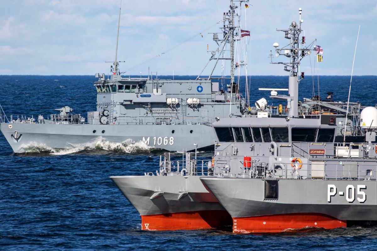 Below is Jelgava (Center right) alongside HMS Lancaster, ENS Wambola, LNS Selvis and LNS Jotvingis