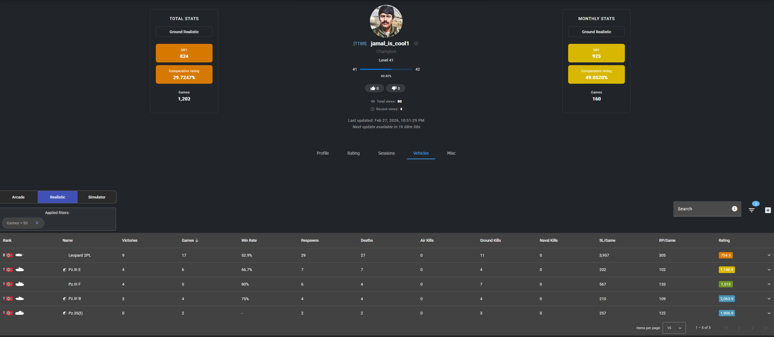 Not necessarily trying to statshame here, just showing others that you’re being dishonest about your own experience in vehicles you claim to have played when you didnt.
