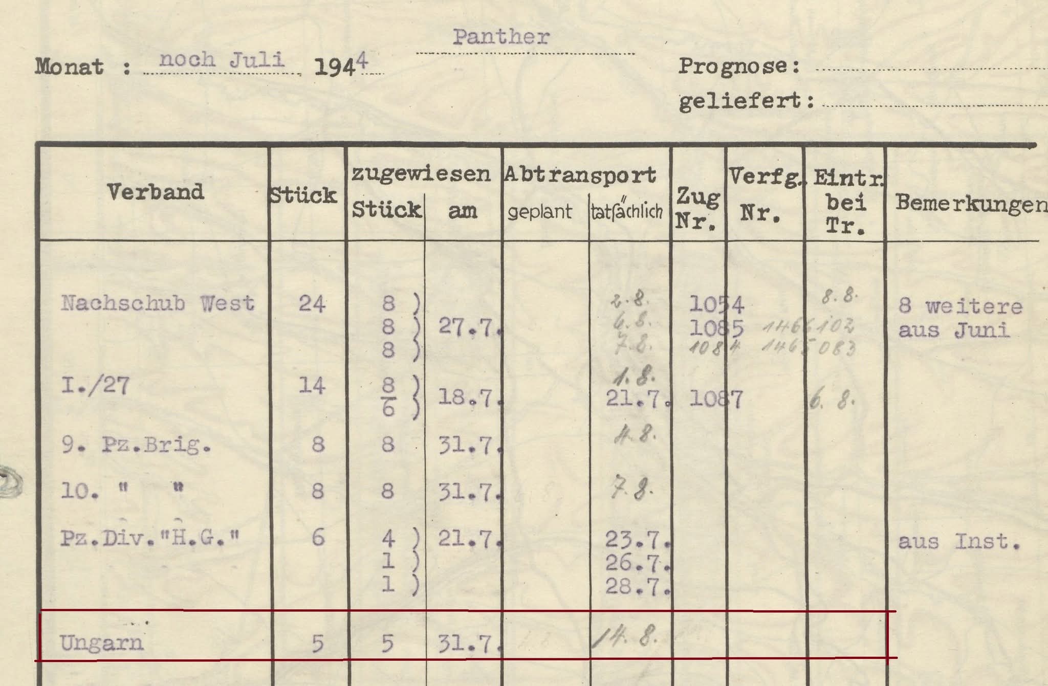 Why is this interesting? Because based on these, I assume that the Germans could have partially replaced the tank losses suffered by the Hungarian 1st Army in the battles of April 1944 with Panthers (also) in the 3rd Tank Regiment of the 2nd Armored Division of the Hungarian Royal Army.