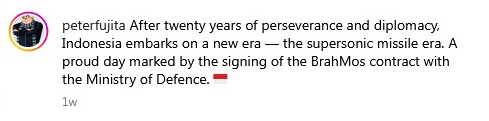 “So, there were no plans. The modifications were offered to modify our Sukhoi jets to carry BrahMos. But we haven’t purchased BrahMos ourselves, and we haven’t yet. There’s no contract in that direction, so there’s nothing yet,” said Deputy Defense Minister Donny.
