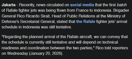 According to publication by Pekanbaru Airbase, there will be strict OPSEC enforcement from the aircraft (supposed) arrival on 22 January (today) until the 24th.