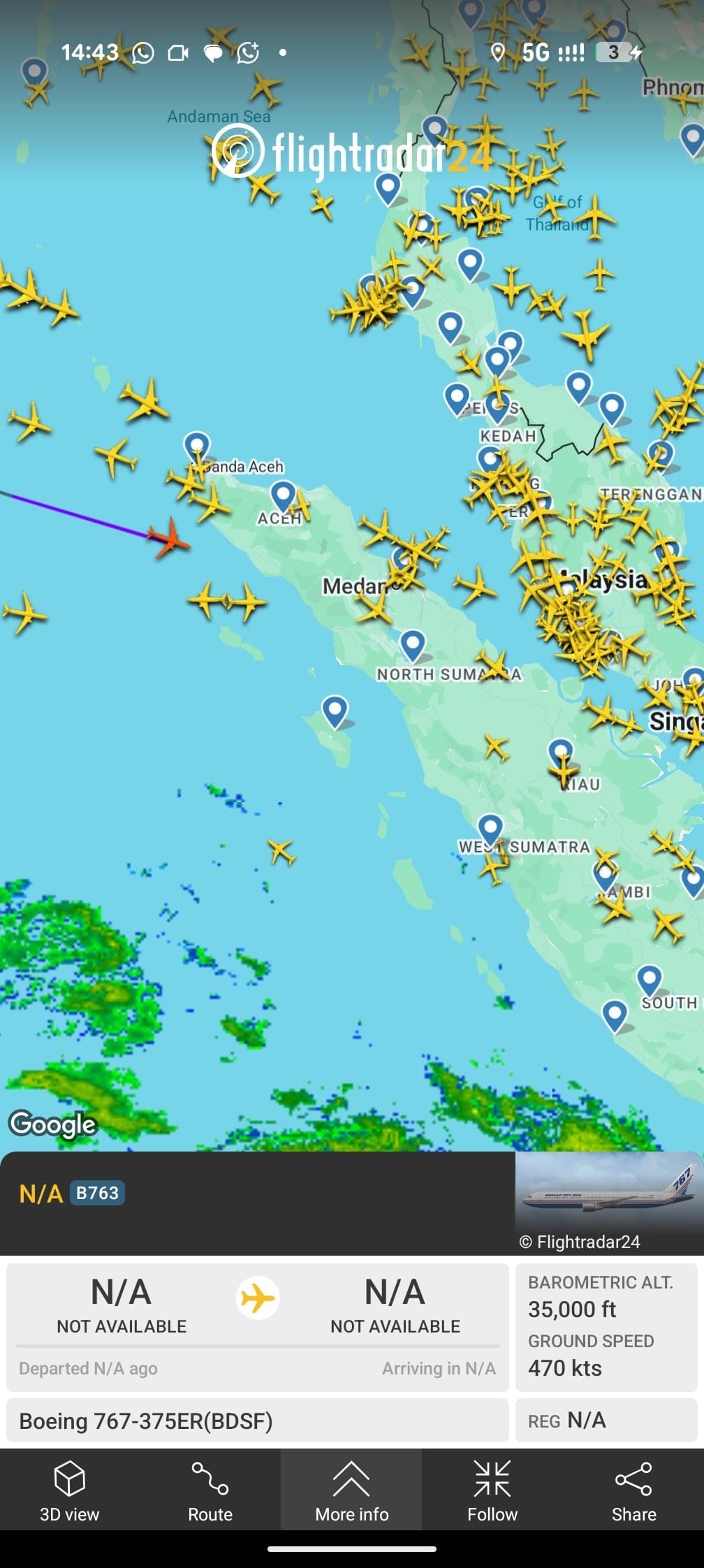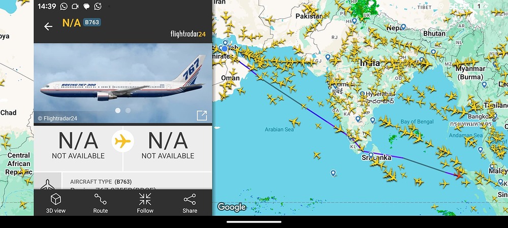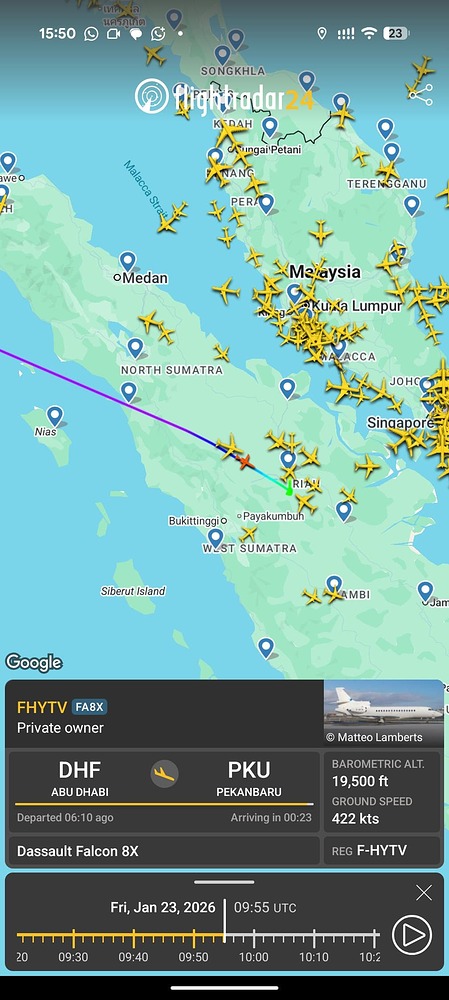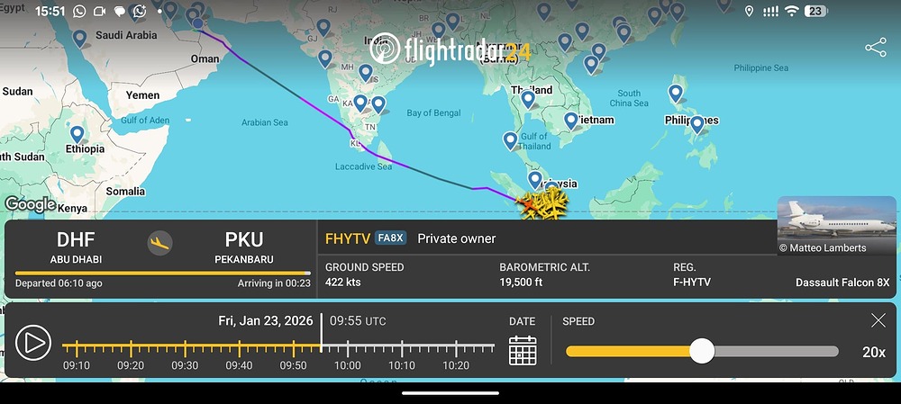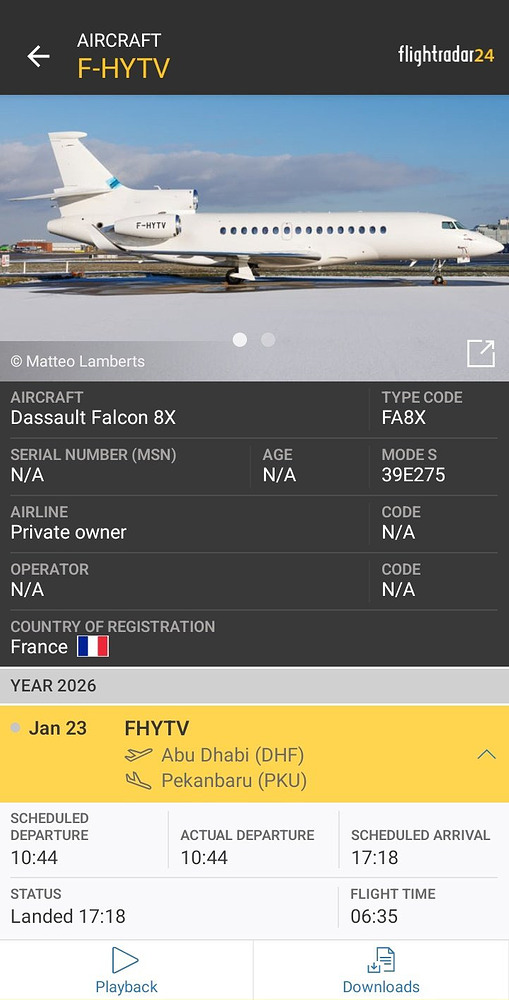 confirmed. Disguised as other types of jet, but flight route is identical (FR > TR > AE > ID).