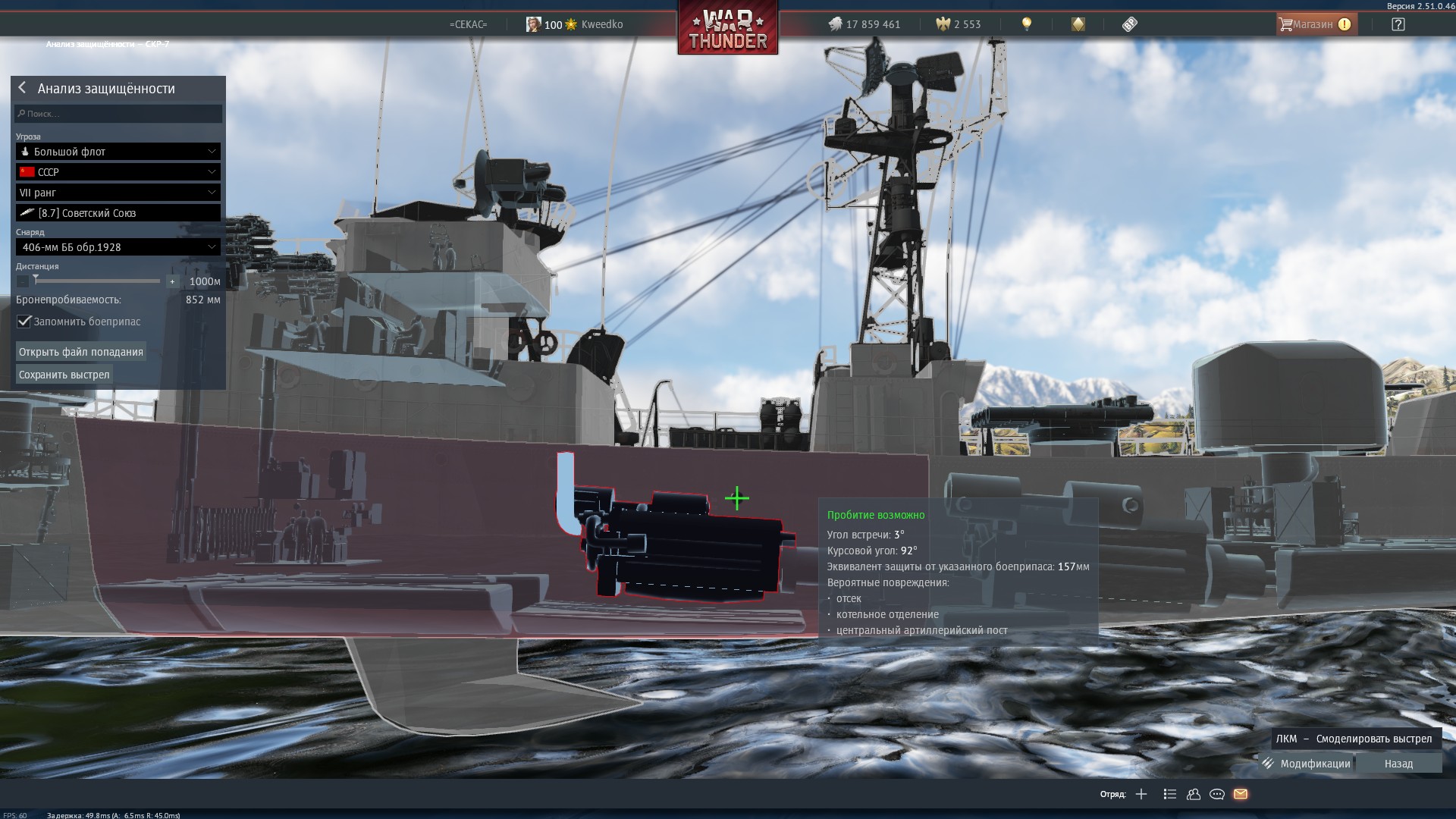 As you can see, the shell (that is a red circle as it just detonated) explodes without going deep enough into the ship, therefore we can’t know for sure if it hit the visual model or not, that way we can’t confirm anything. That’s why i said we would need a round without filler, as the soyuz’s armor is too thick and slows the shell too much for it to go far enough to reach the magazine.