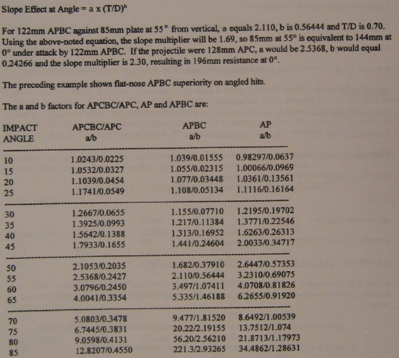 If this doesn’t feel right, then you’d have to find a source that proves that both armour plates should be calculated as one plate or find a source that overrides the slope modifiers for APBC shells from WWII Ballistics Armor and Gunnery.