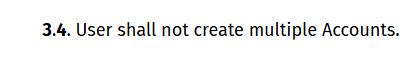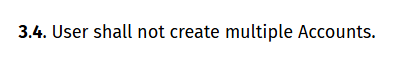 3.6. User is prohibited from selling, buying, renting, exchanging, or giving away their Account.