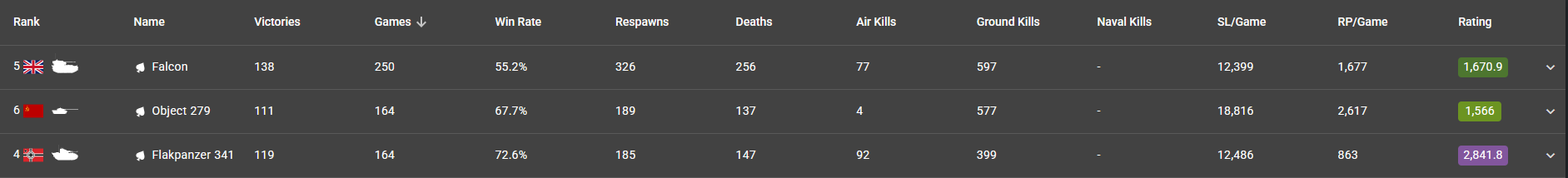 It’s not surprise that Falcon and Flakpanzer are in my top 3 ground (RB) vehicles I’ve used this year: