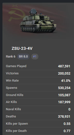 I mean, most things are worlds better than ZSU-57-2 when it comes to shooting planes. That thing could literally be at 3.0 if it had less pen on it’s AP belt.