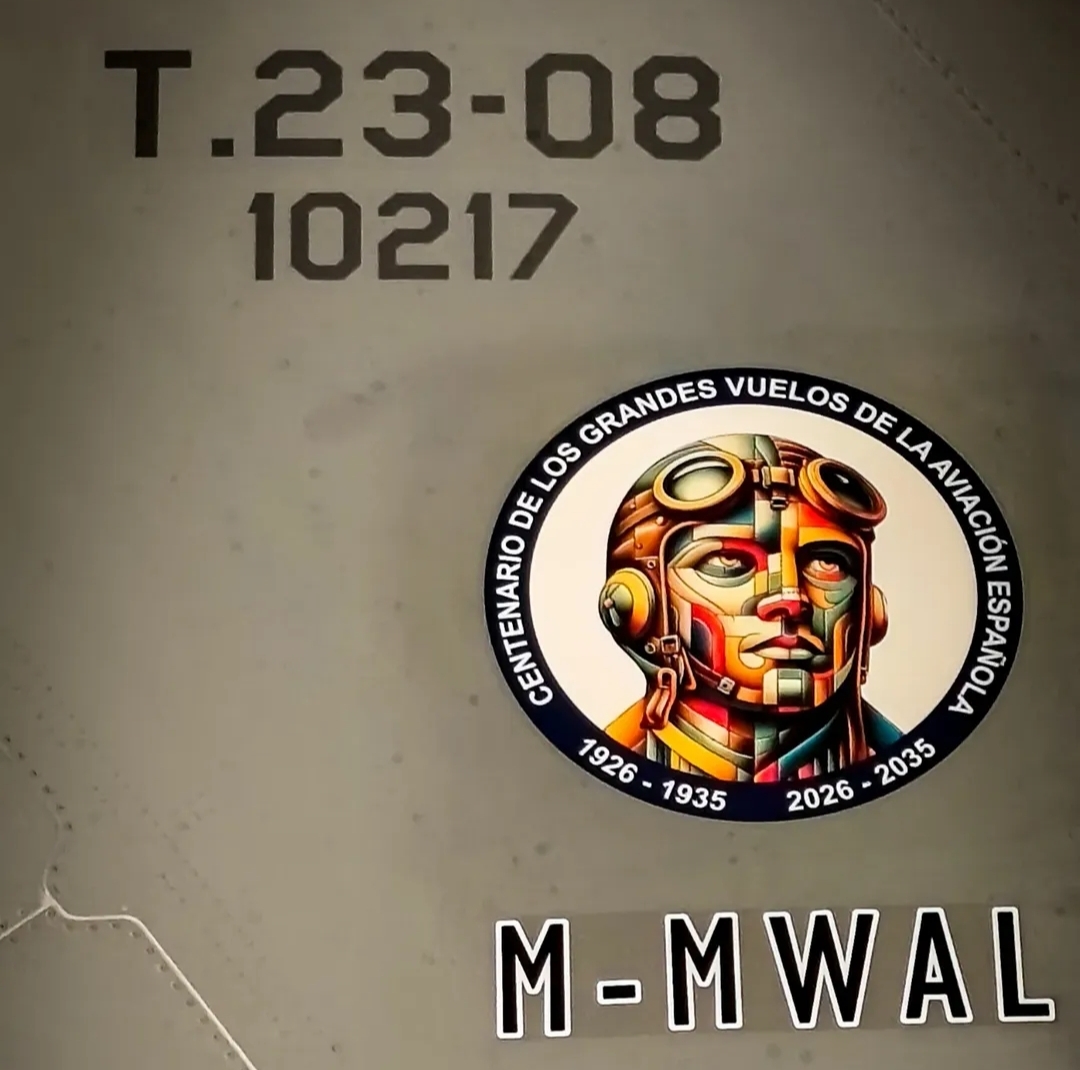 The decal’s writing means “centnary of the great flights of the spanish aviation (1926-1935/2026-2035)” and has below the registration number of the original Plus Ultra plane (M-MWAL).