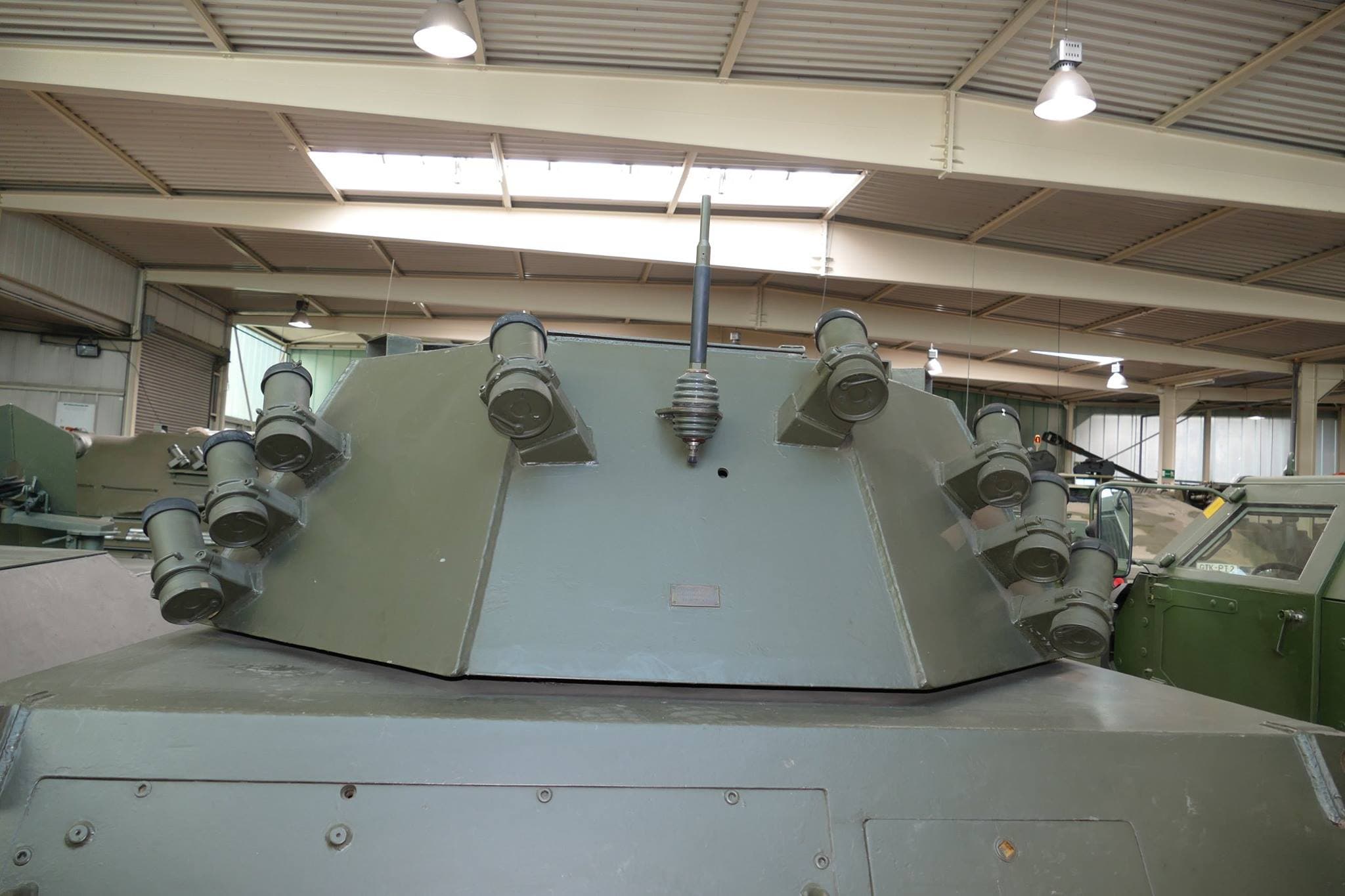 The driver maintains his position on the front left side of the vehicle. The turret is equipped with the same MECAR 90mm cannon and MG42 coax, but this time, the turret is a lot bigger, both in height and internal volume. While pictures of the internals are not available, the differences can be seen clearly. It now has 2 sets of three smoke dischargers on the lower-rear of the turret and another set of single smoke dischargers on the upper-rear of the turret, doubling the amount from a measly 4 on the French design.