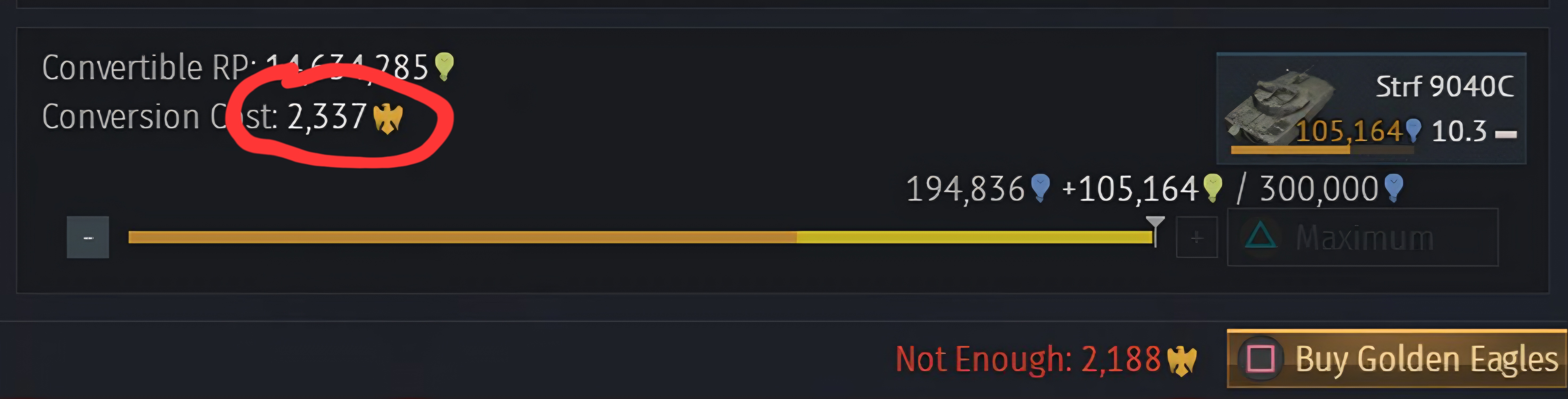 As you can see it costs about 2400 GE to buy 500 research points for a squadron tank,