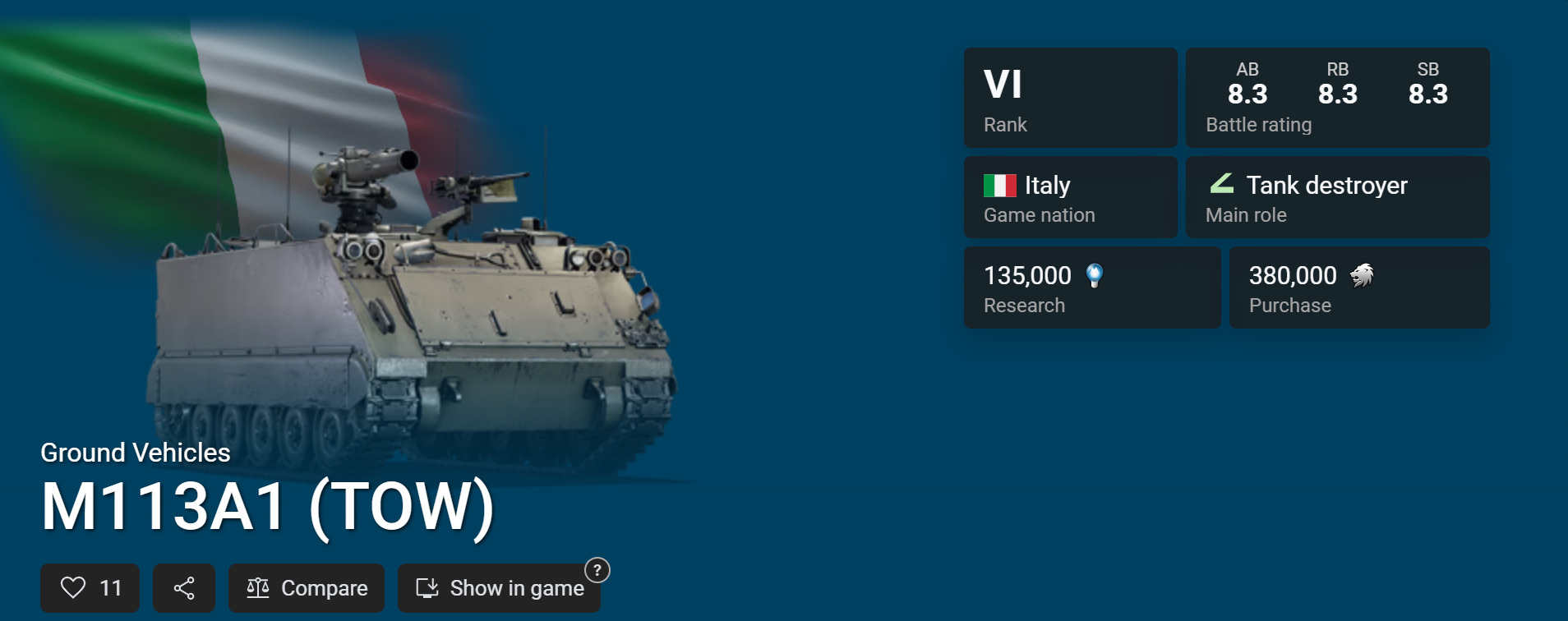 I’m not necessarily saying the TOW launchers should go down in BR, just pointing out the need for more decompression in this regard. Vehicles that are much better than the other should in an ideal world not share the same BR.