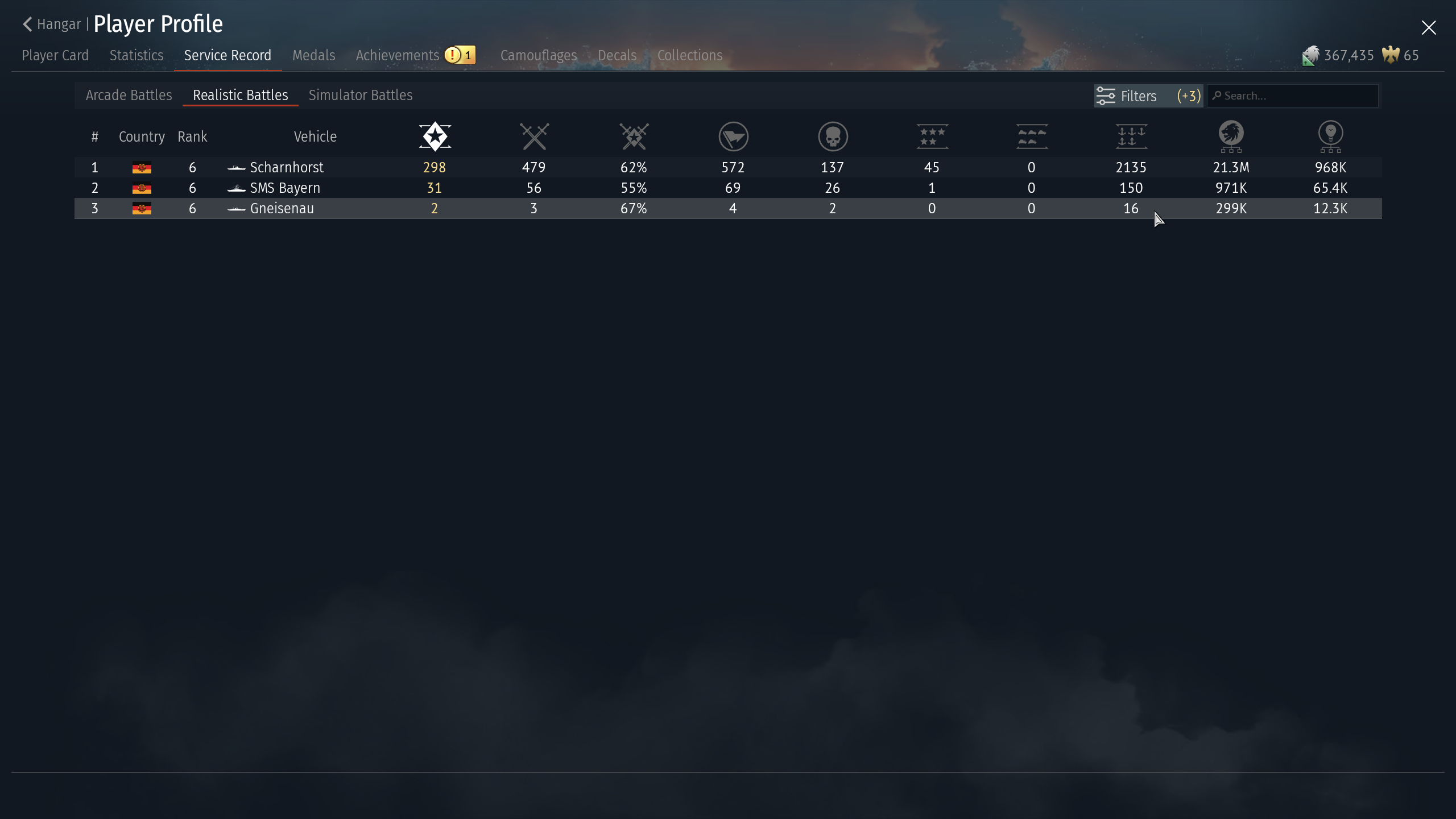 As of right now, I have not used Gneisenau in any other battles, yet my official service record for the ship lists 3 battles, 2 wins, 4 spawns, 2 deaths and 16 kills: